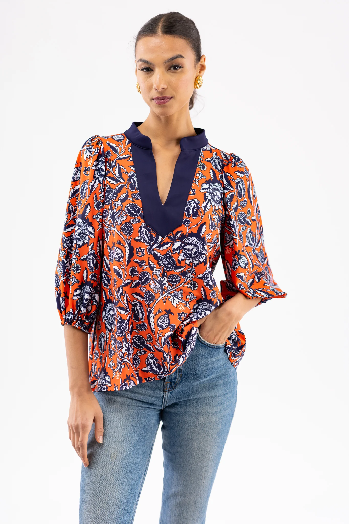 Shown here in Auburn Floral Orange.Ā Made in S&Q Stretch fabric.